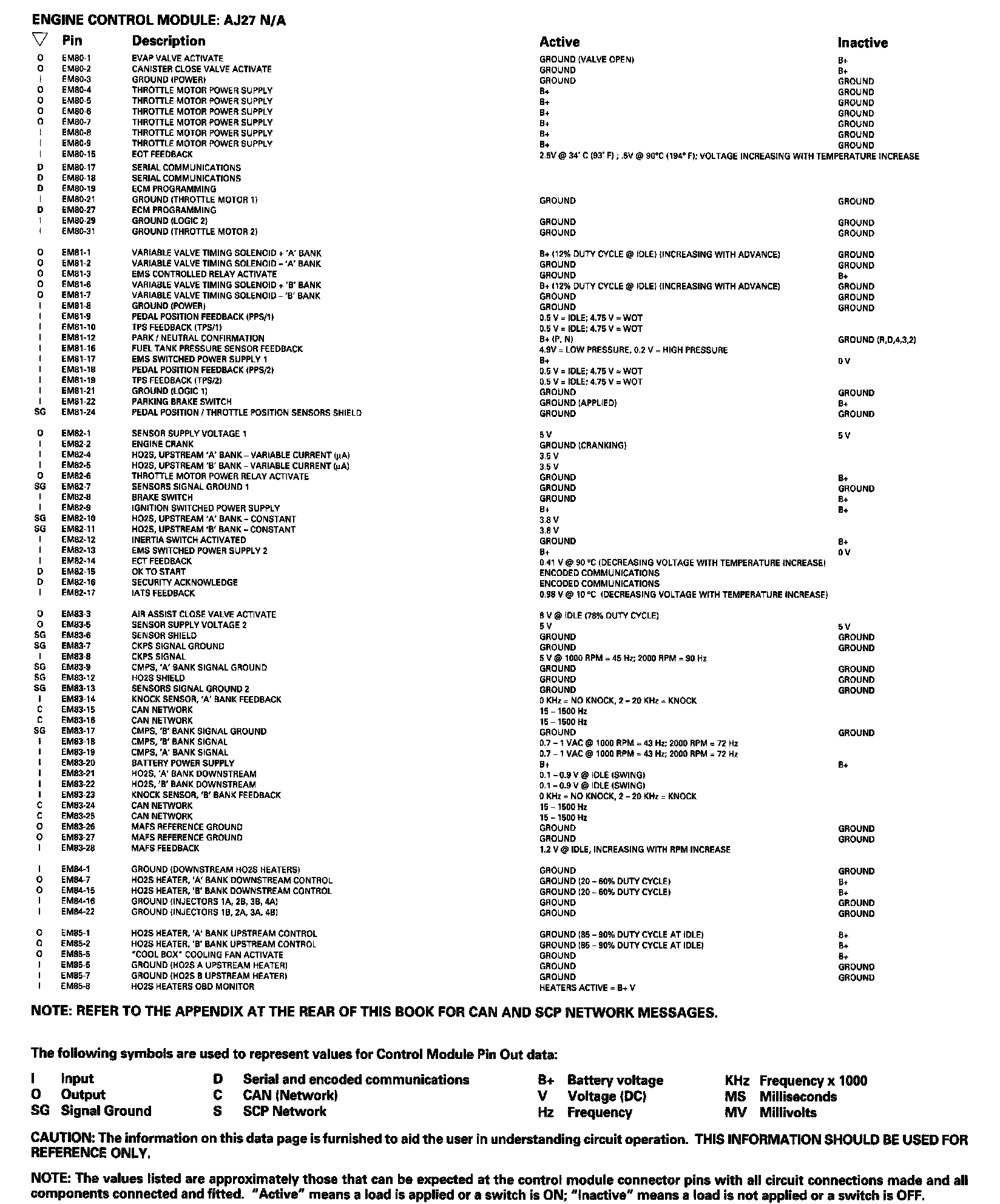 Control Module Pin Out Information