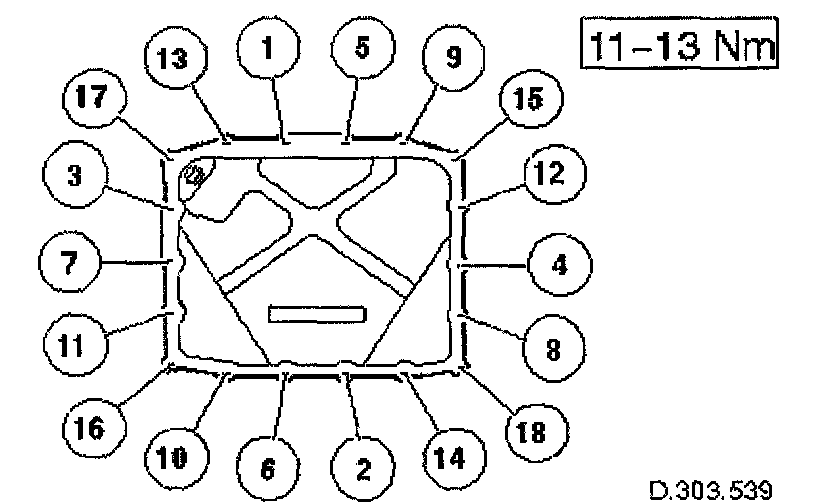4. Tighten the bolts to the correct torque figure 11-13 Nm, in the sequence indicated.