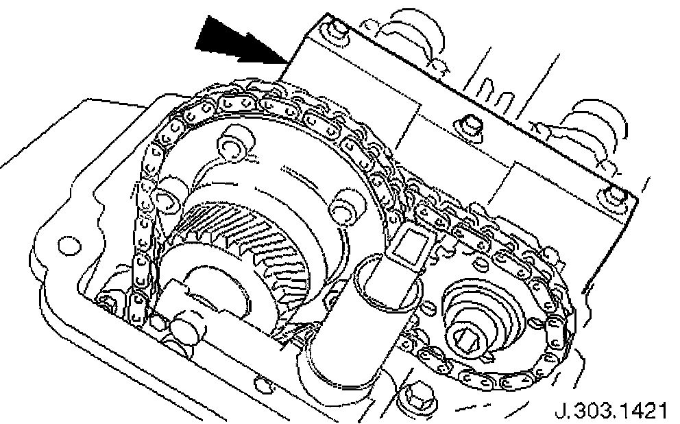 Position the cam sprocket, chain and tensioner assembly into position and locate the sprocket onto the camshaft spigot.