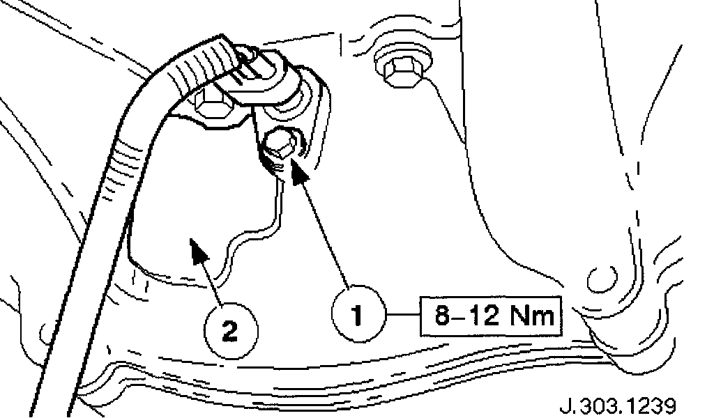 Install the sensor to the flywheel housing and fit the securing bolt. Tighten to 8 - 12 Nm.