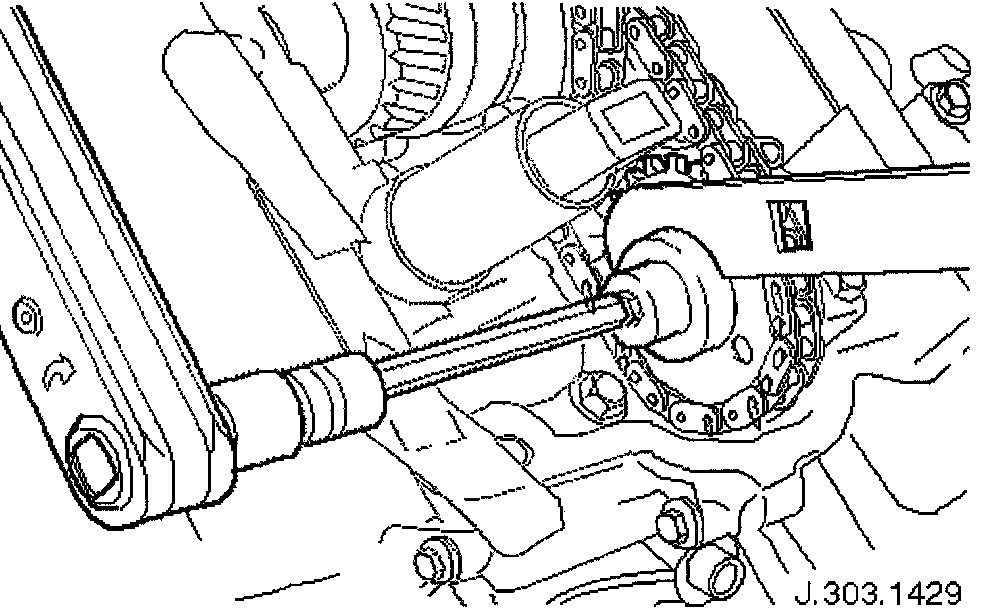 Protect the upper face of the timing cover from scratches, when removing the bolt which secures the sprocket.