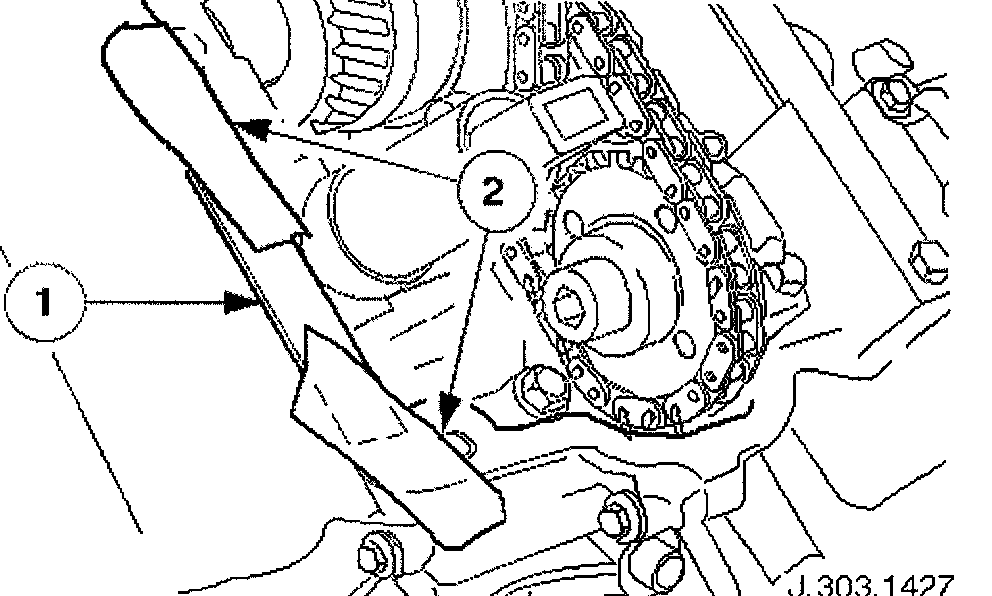 Place a flat piece of steel strip along the timing cover horizontal jointing face, adjacent to the exhaust camshaft sprocket.