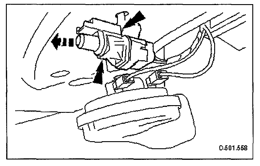 - Remove horn mounting bracket securing bolt and remove horn and bracket from beam.