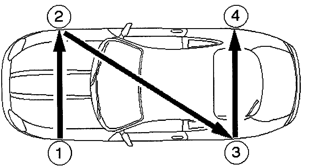 7. Following the procedure above, bleed the brakes in the order shown: