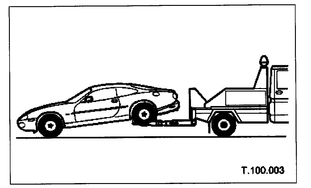 A vehicle with a defective transmission must be towed by rear suspended tow.