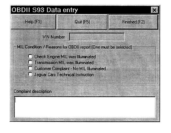 MIL Condition - One of four check boxes must be selected, these indicate the reason for the S93 OBDII report.