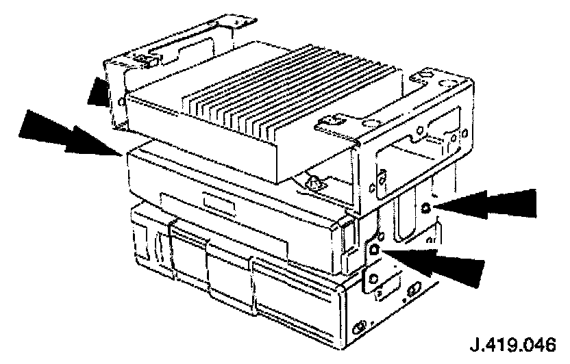 4. Remove four bolts securing audio/DVD reader module stack to mounting frame.