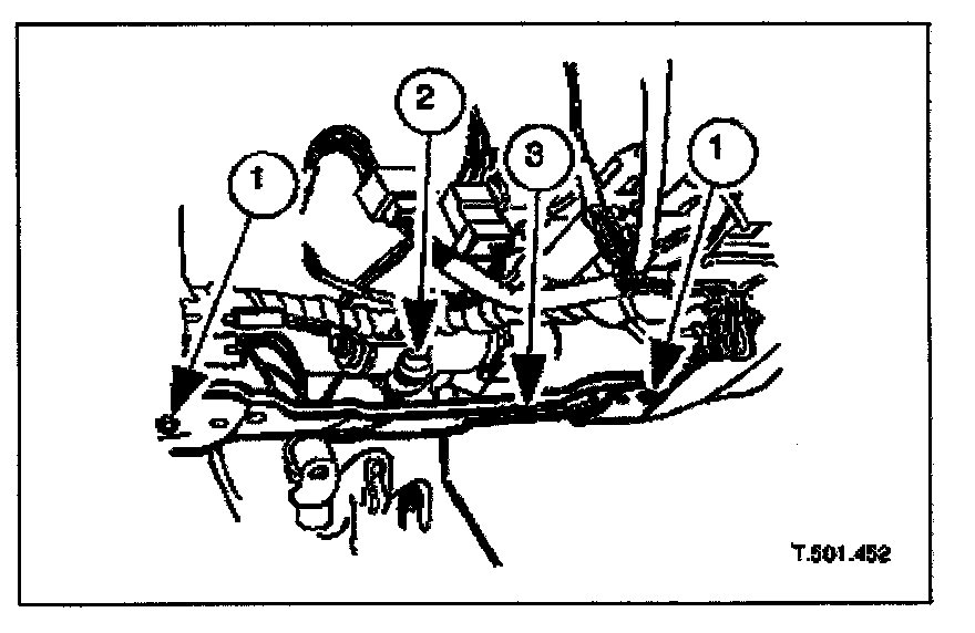 1. Turn ignition key to position II, power passenger's seat fully rearwards and turn ignition key to position 0.