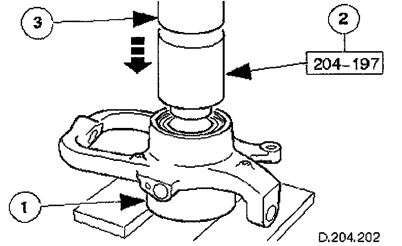 Operate press to fit bearing, make sure that the bearing is fully seated by applying a three-ton seating load.