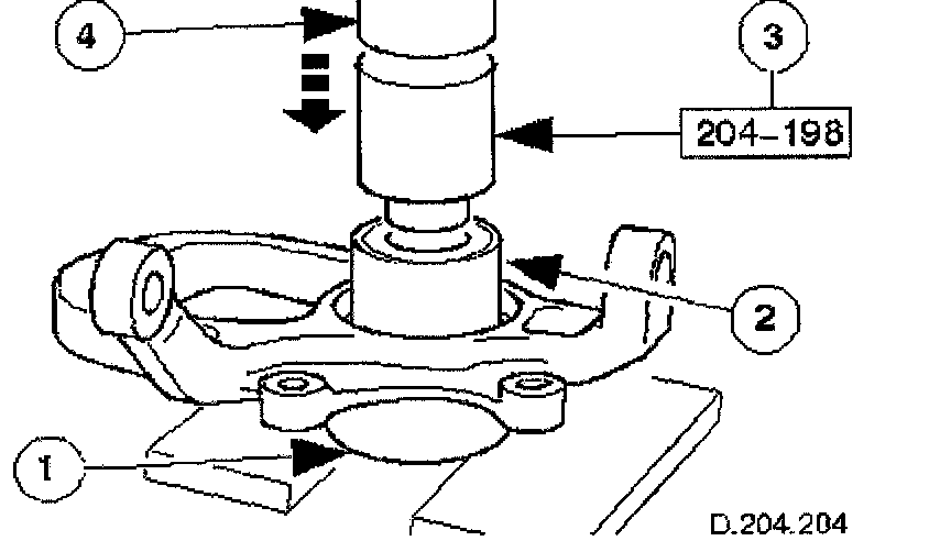 Operate press to fit bearing, make sure that the bearing is fully seated by applying a three-ton seating load.