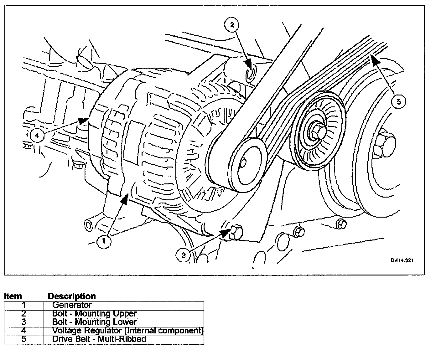The generator is driven by a single, multi-ribbed belt which also drives all other front-end accessories. No special service tools are required to remove the generator from the vehicle.