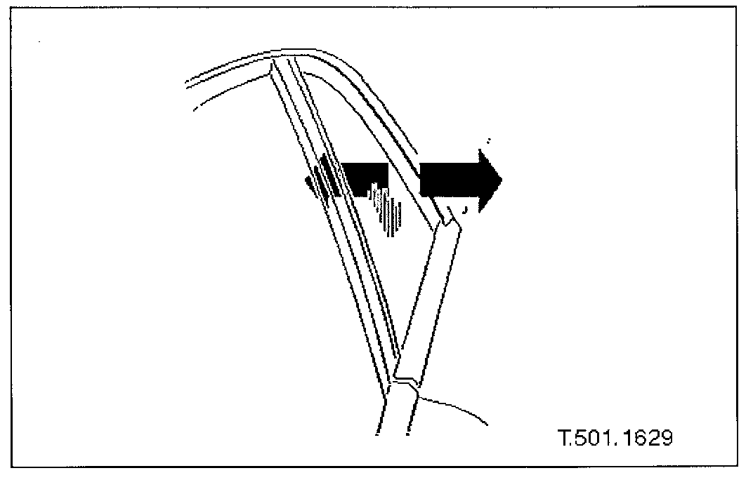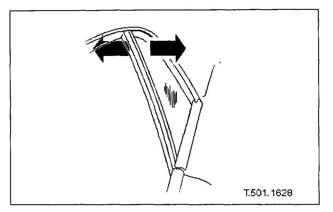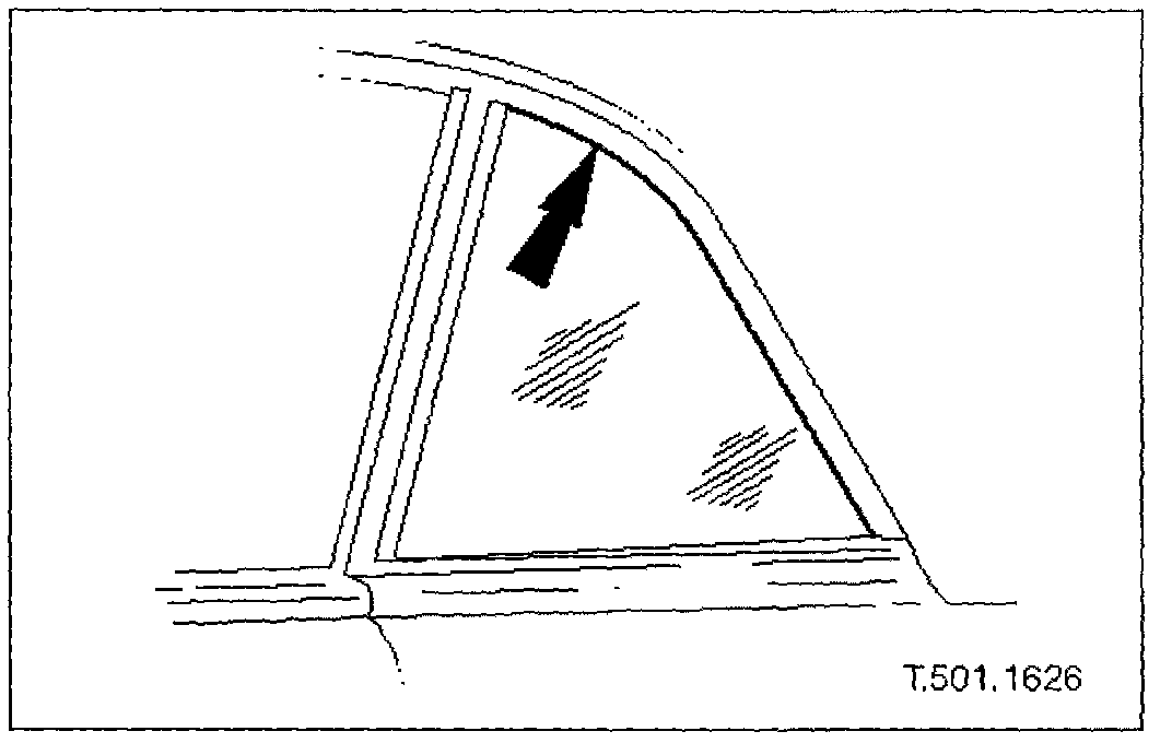 17. Turn upper adjuster to achieve lateral alignment of rear quarter glass upper edge with top seal.