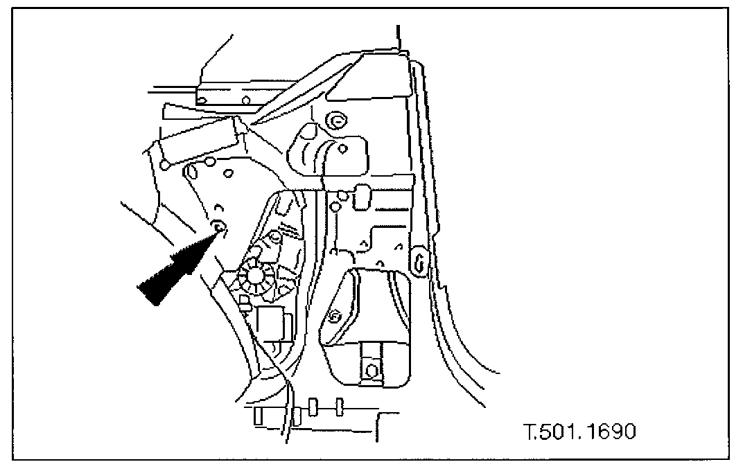 9. If earlier PVC water shedder is installed, route glass lift motor link lead through penetration and remove water shedder from body.