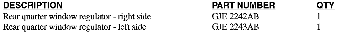 3. Install new rear quarter window regulator(s) (see Workshop Manual, JTIS CD ROM, section: 501-11, SRO 86.25.11).