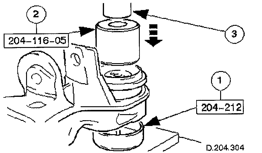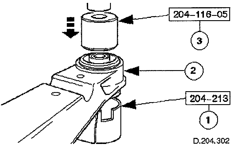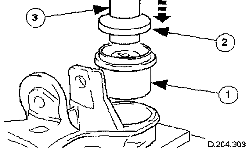2. Using a hydraulic press, remove front mounting bush from the crossbeam.