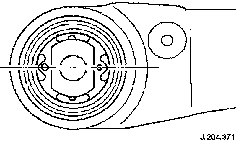 1. NOTE: The bush must be in the position shown when it is fitted to the crossbeam - viewed from the top of the crossbeam.