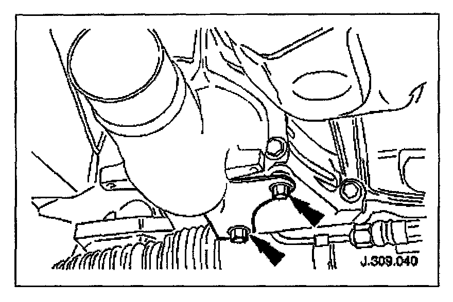 Install, but do not tighten, the mounting bracket securing bolts. (Leave loose until the nuts securing the downpipe to the exhaust manifold are fitted and tightened.)