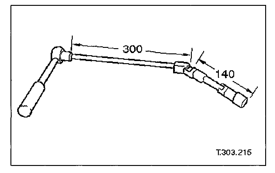 9. The upper bolt may be removed (after loosening) using a 3/8' square drive 13 mm socket, extensions and U.J as shown.