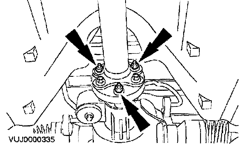 Mark the position of each nut and bolt in relation to the transmission flexible joint.
