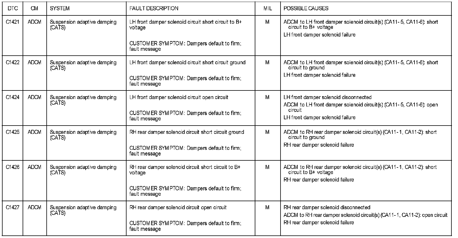 DTC C1421 - C1427: