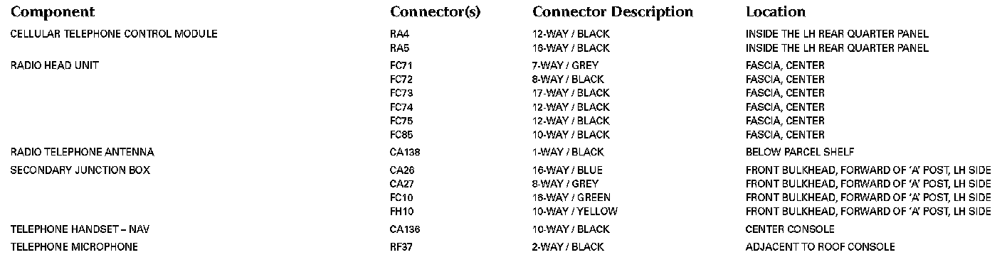 Refer to Vehicle / Locations for detailed information and illustrations regarding the location and identification of harnesses, relays, grounds and control modules. Locations