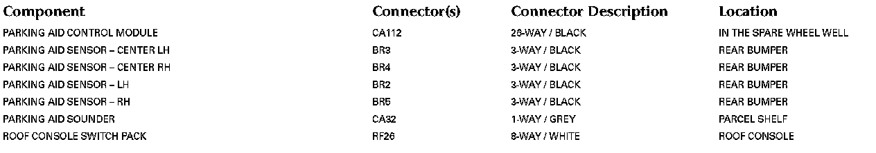 Refer to Vehicle / Locations for detailed information and illustrations regarding the location and identification of harnesses, relays, grounds and control modules. Locations