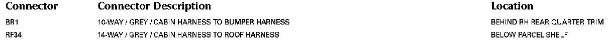 For detailed informations and illustrations regarding the location and identification of control modules pins, refer to Vehicle / Diagrams / Connector Views. Connector Views