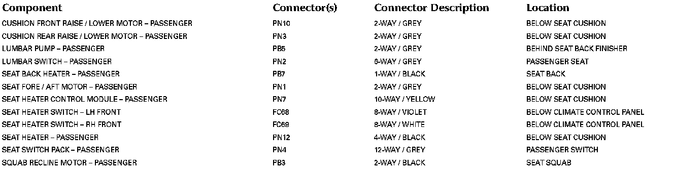 Refer to Vehicle / Locations for detailed information and illustrations regarding the location and identification of harnesses, relays, grounds and control modules. Locations