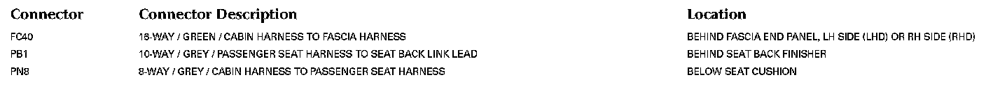 For detailed informations and illustrations regarding the location and identification of control modules pins, refer to Vehicle / Diagrams / Connector Views. Connector Views