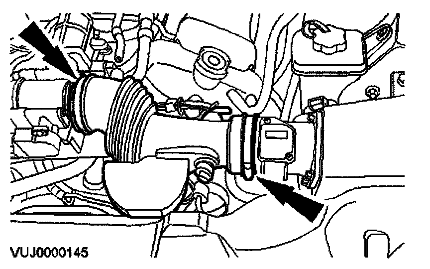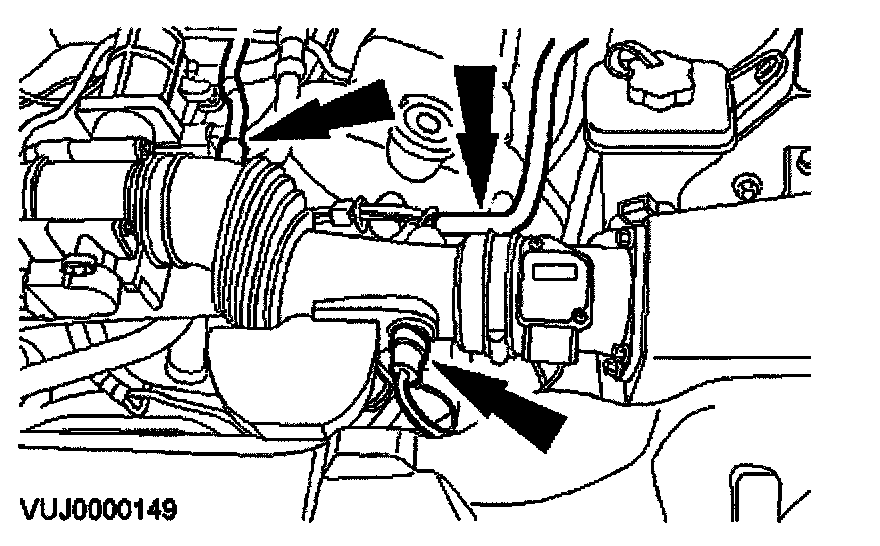 3. Disconnect the intake air temperature sensor electrical connector and the engine breather hoses.