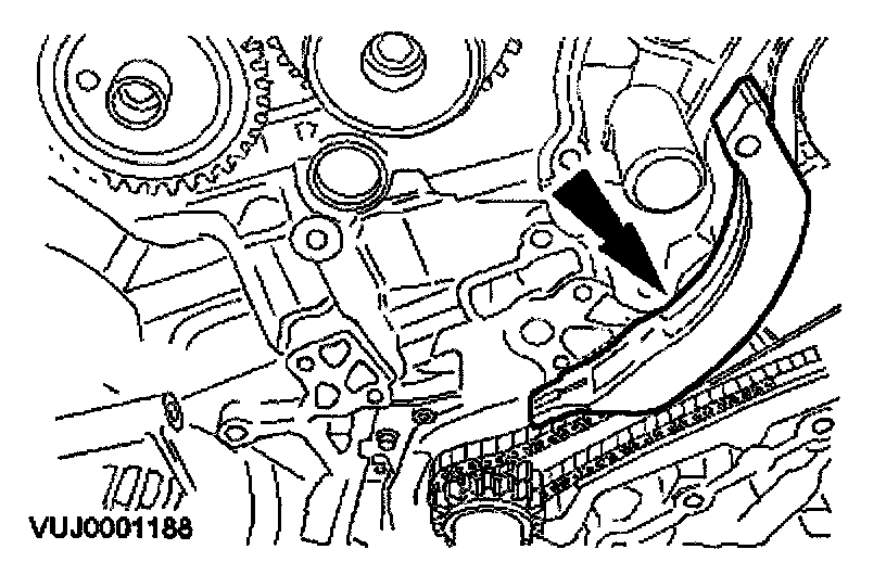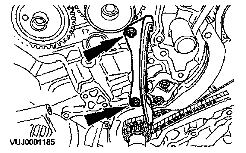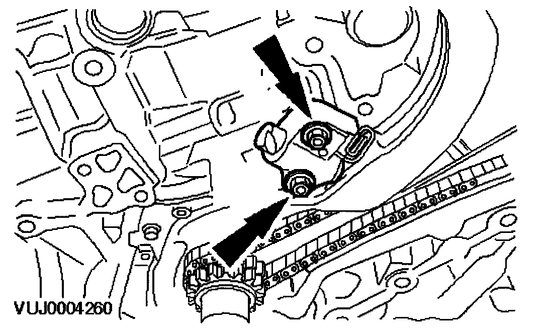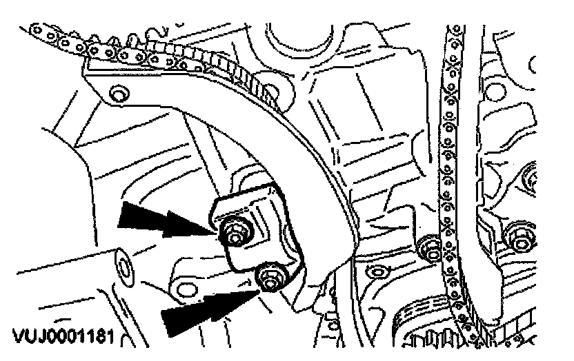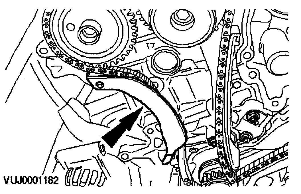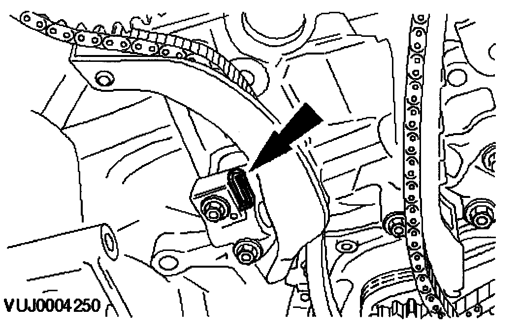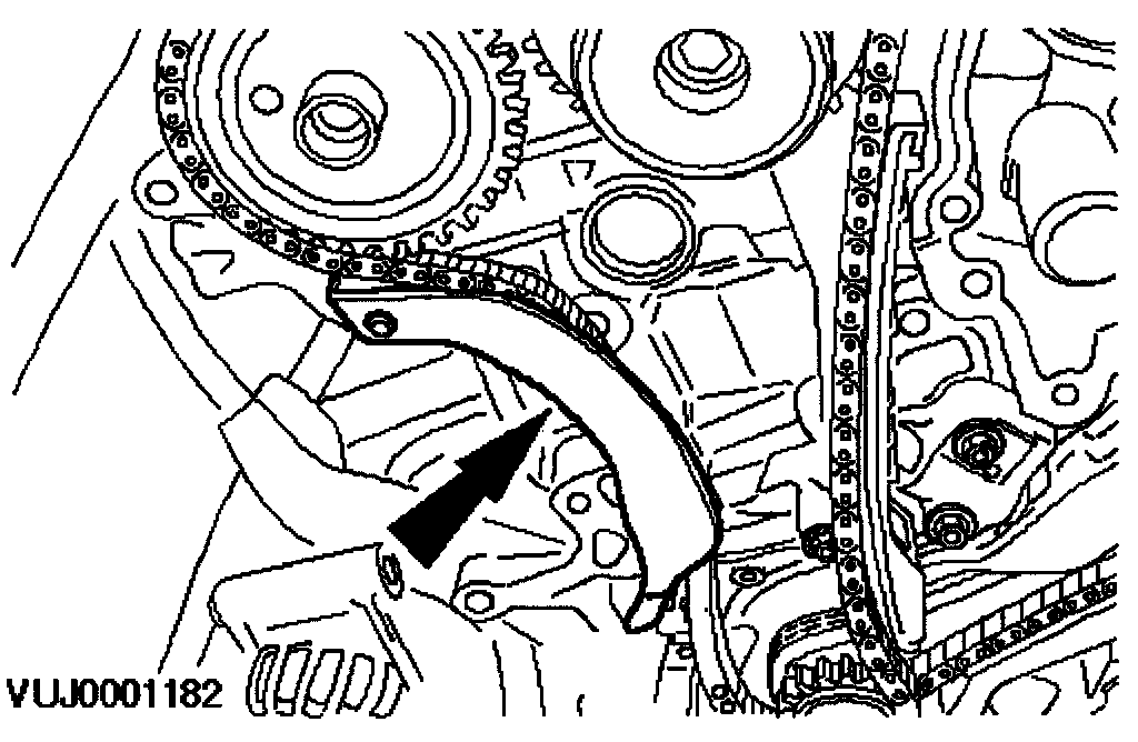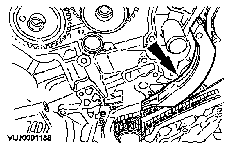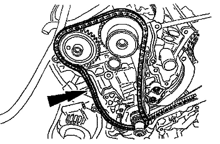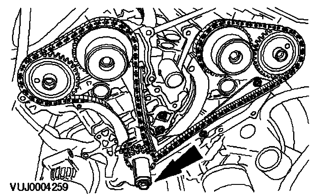 CAUTION: Make sure the timing chain slack is on the tensioned side of the timing chain.