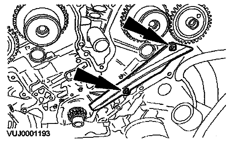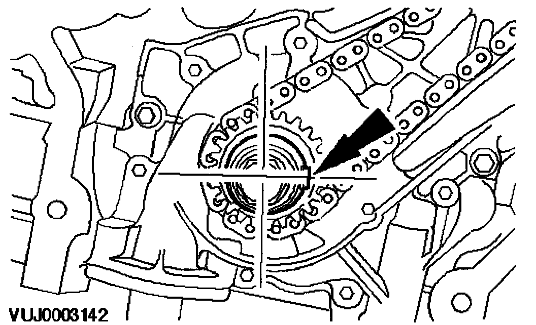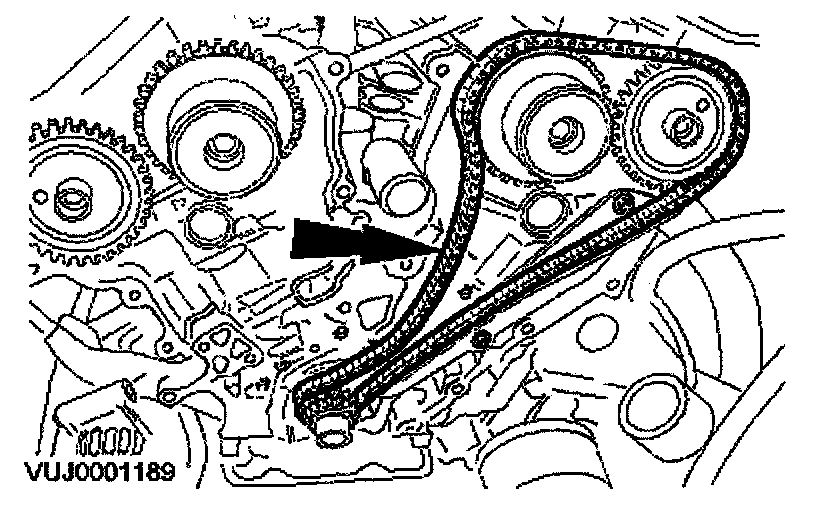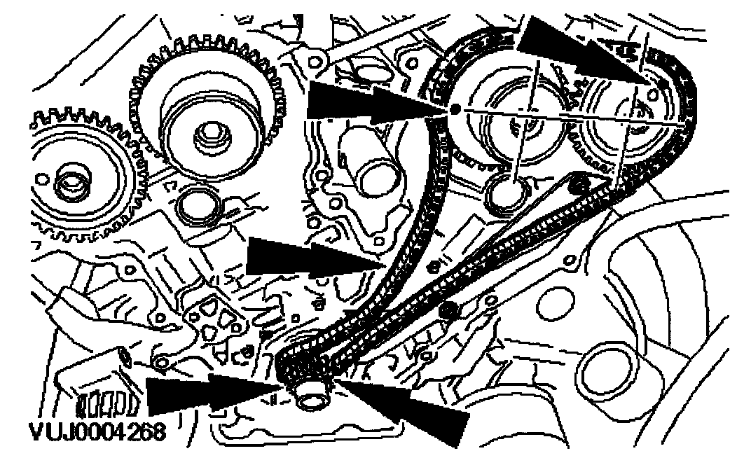 CAUTION: Make sure the timing chain alignment marks are correctly positioned to the crankshaft sprocket and camshaft sprocket alignment marks.