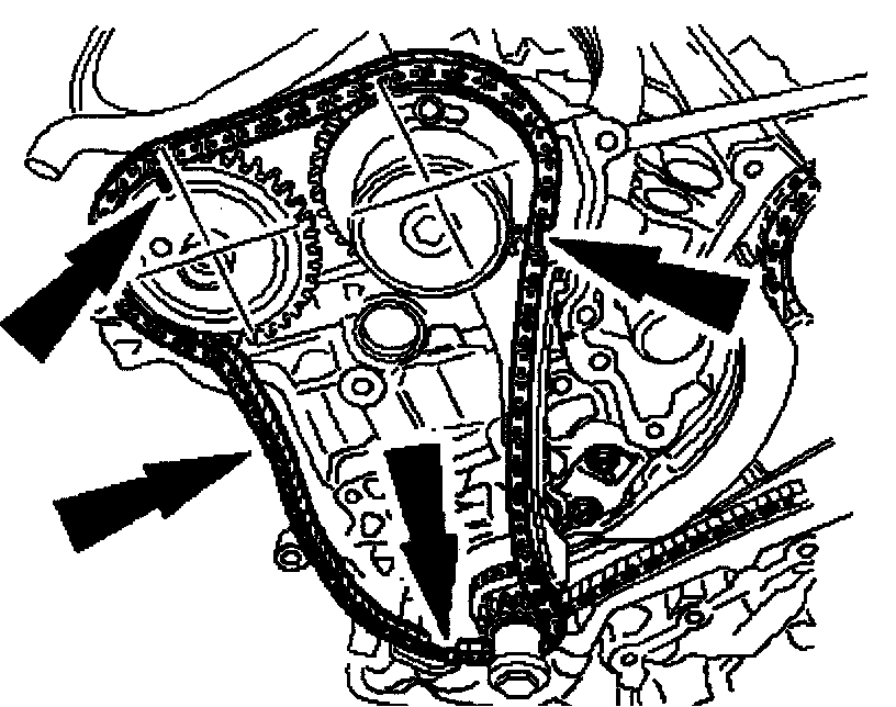 14. Make sure the left-hand timing chain alignment marks have remained correctly positioned to the camshaft sprocket and crankshaft sprocket alignment marks.