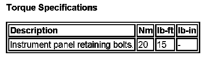 Dashboard / Instrument Panel: Specifications
