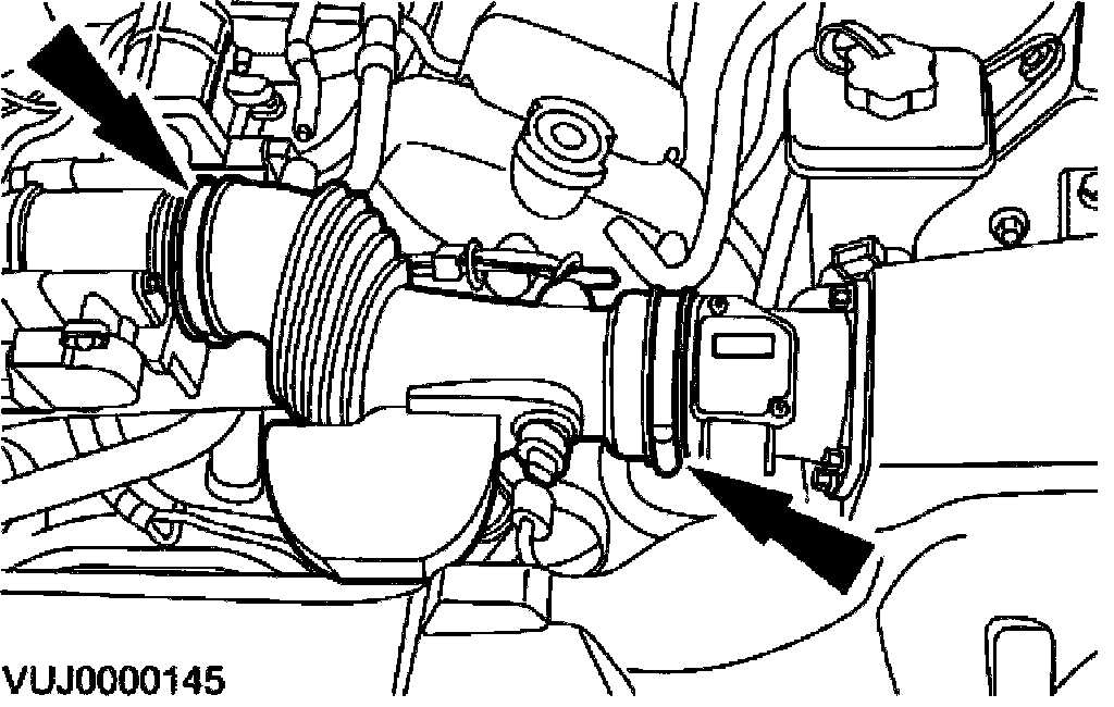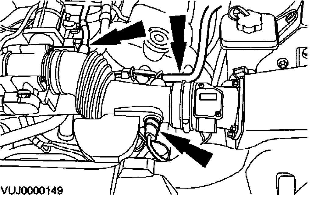 1. Disconnect the intake air temperature sensor electrical connector and the engine breather hoses.