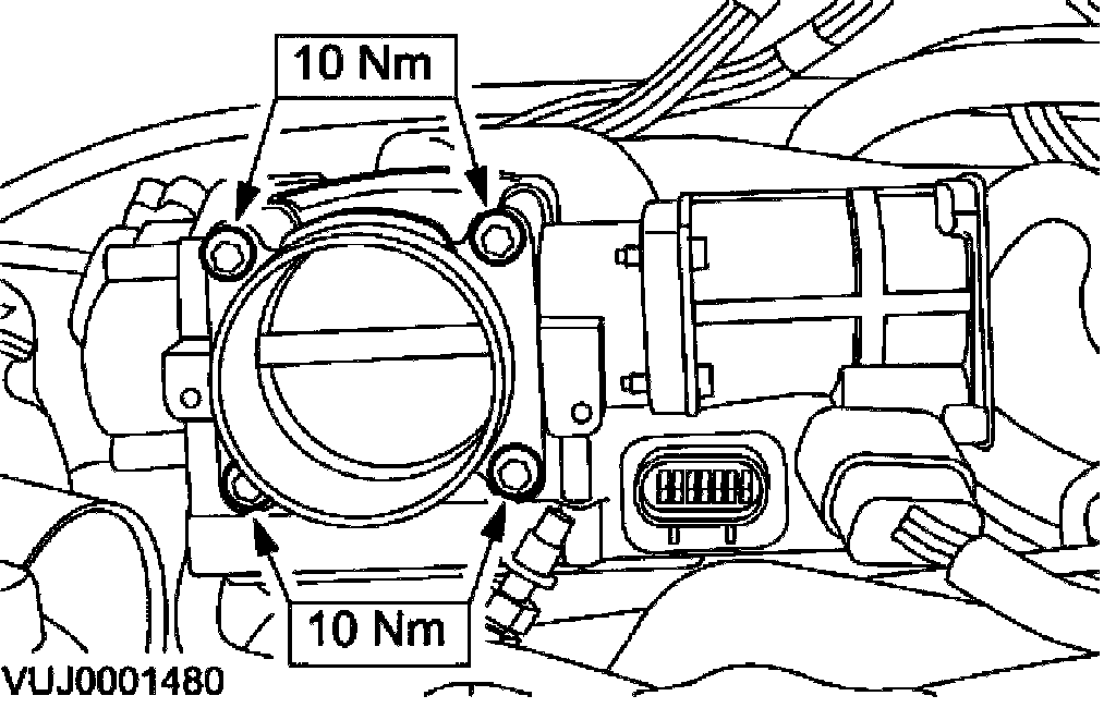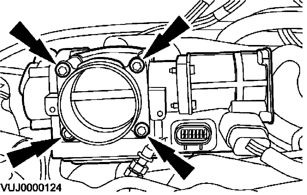 1. CAUTION: Do not attempt to clean the throttle body. The bore and the throttle plate has a special coating applied during manufacture which should not be removed.