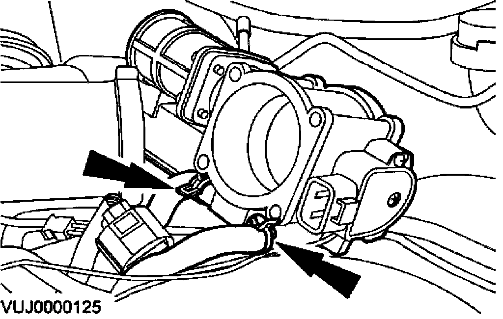 4. Disconnect the throttle position sensor and electronic throttle body electrical connectors.
