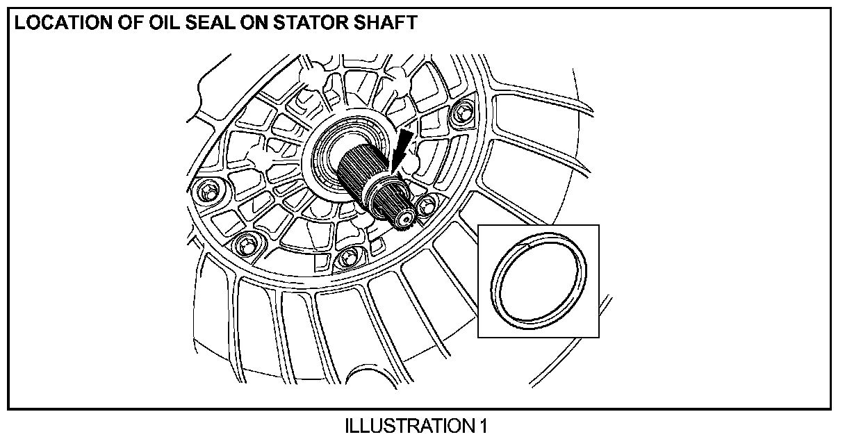 3. Inspect the stator shaft and determine if the seal is damaged or if no seal is present at the location shown in illustration 1.