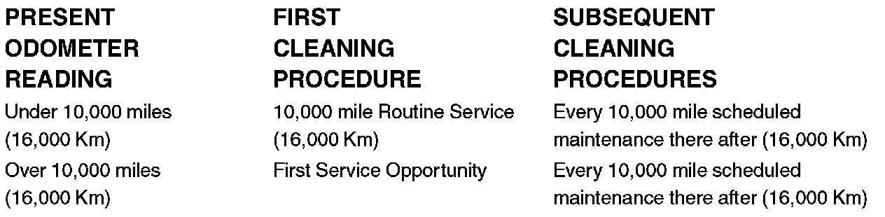 Once the warranty expires on a vehicle covered by this service action, the cleaning procedure should continue to be included in all scheduled maintenance visits at multiples of 16,000 Km (10,000 miles).