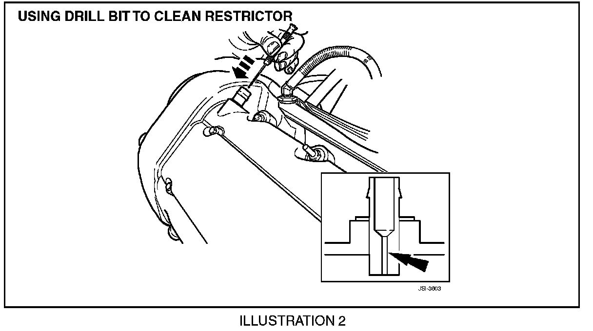 Do not allow the diameter of the restricter to increase. Use a micrometer to verify that the diameter of the drill bit does not exceed 0.098 inch (2.5 mm.).*