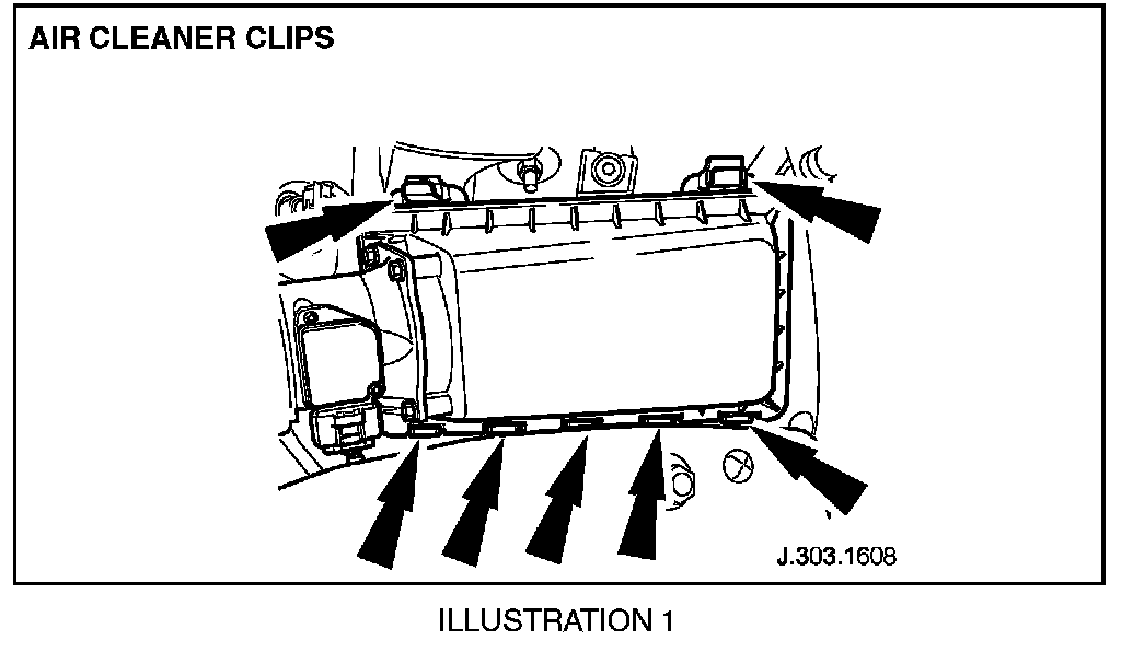 26. On both 3.0L V6 and 4.0L V8 vehicles, visually inspect air cleaner for loose, faulty or damaged clips. (Illustration 1)