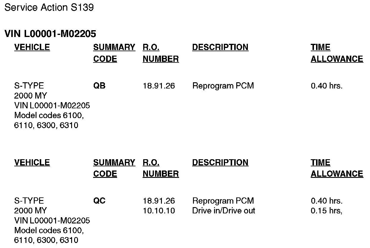 S-TYPE ECM Reflash - Service Action S139