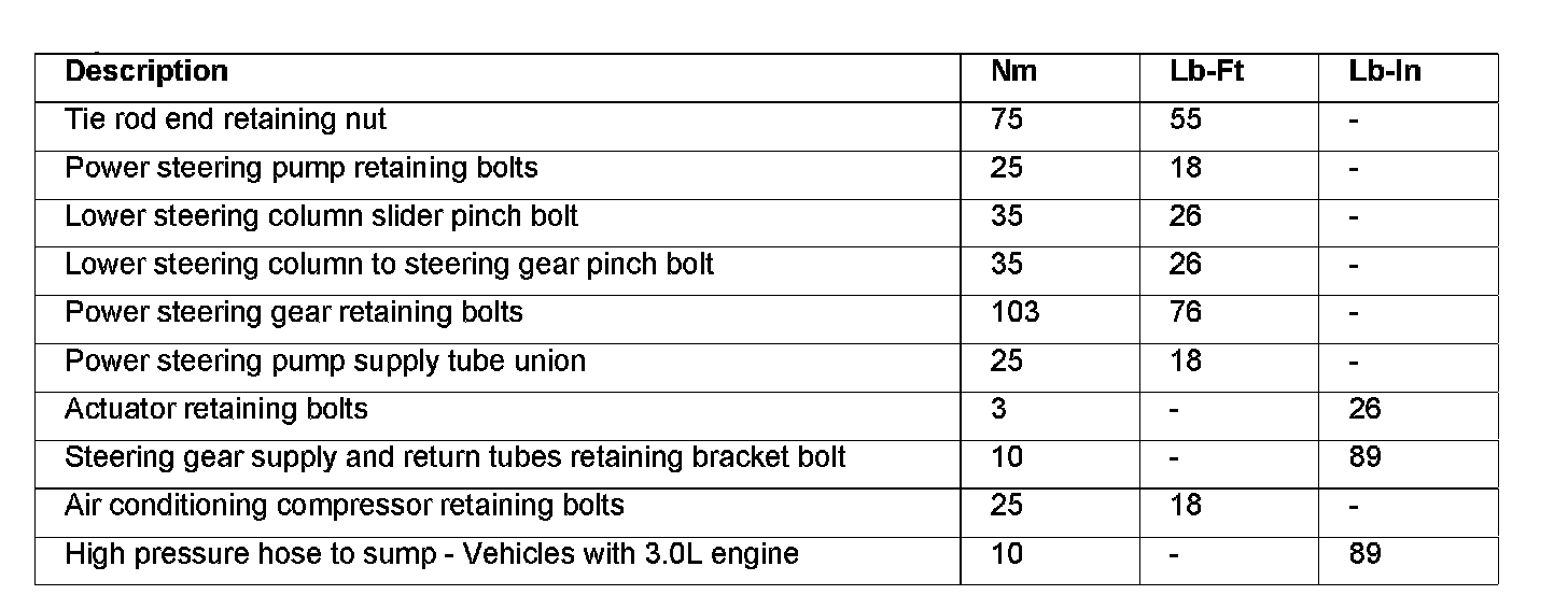 Power Steering Torque Specifications: