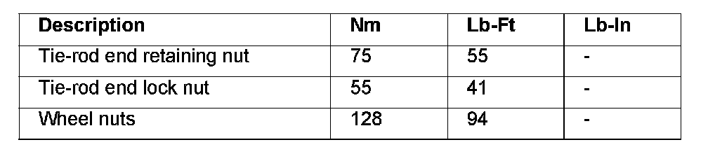 Steering Linkage Torque Specifications: