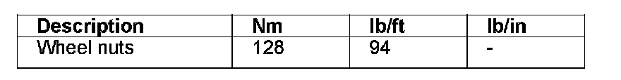 Torque Specifications, Wheels and Tires