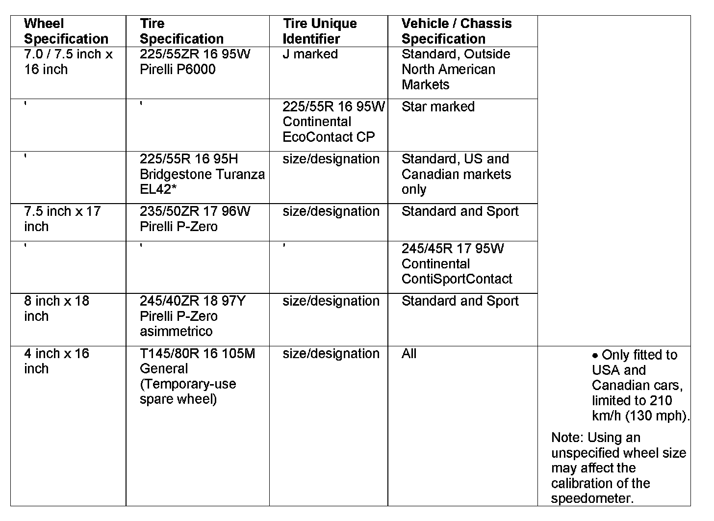 Wheel And Tire Specifications, Wheels and Tires