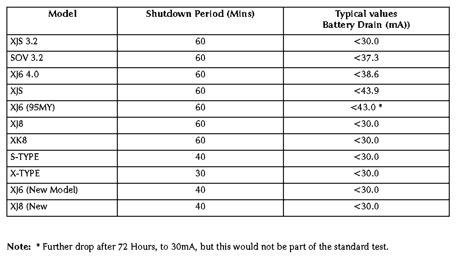 NOTE: The total current drain will be higher if certain Jaguar approved accessories (e.g. Tracker; Cool bag; Trailer Tow Module) are fitted.