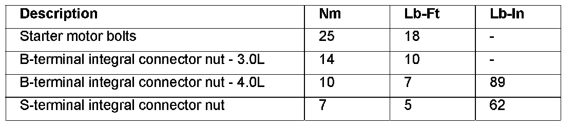 Starting System: Specifications