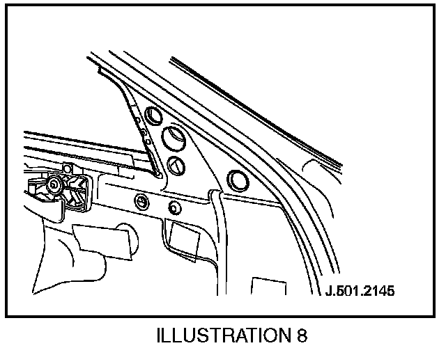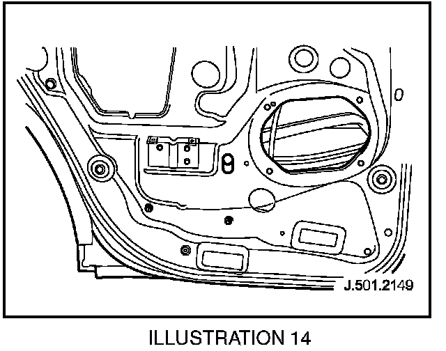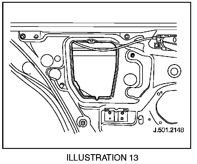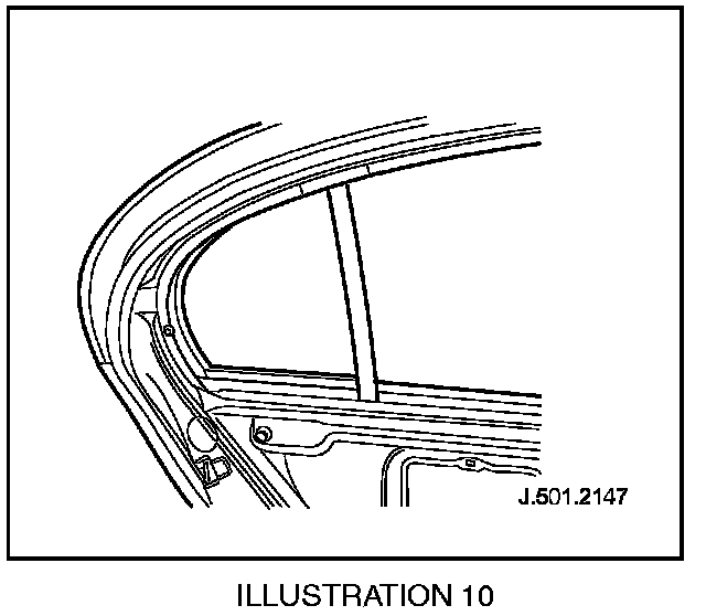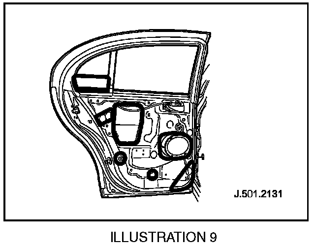 1. The following illustrations depict possible water leak points around the rear door area (Illustration 9).