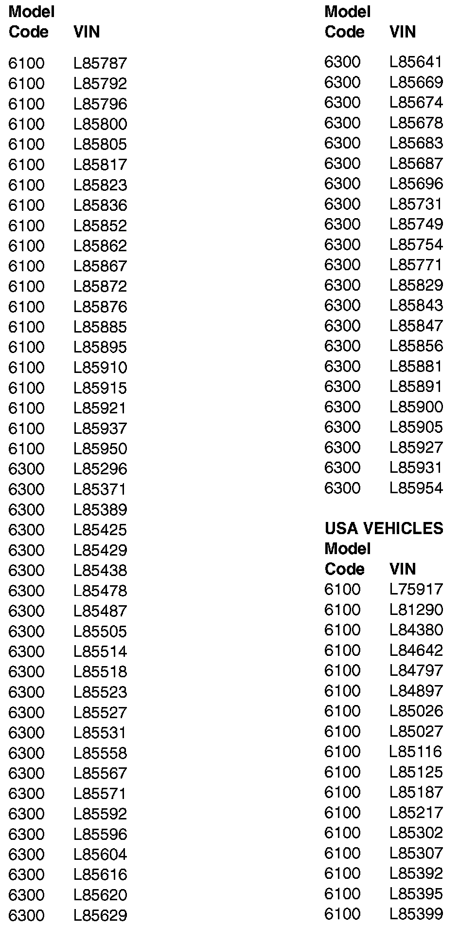 VEHICLES NOT AFFECTED BY THIS RECALL